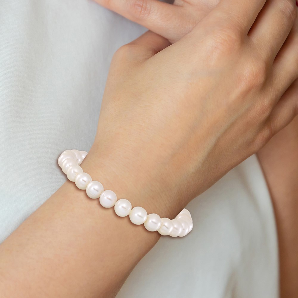 8-9mm White Round Freshwater Cultured Pearl Stretch Bracelet