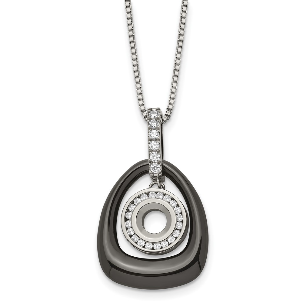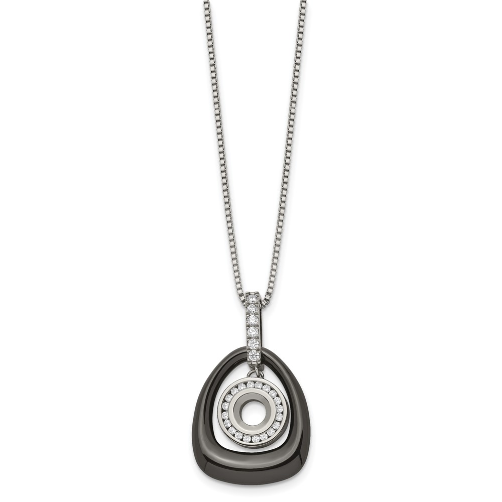 Polished Ceramic w/CZ Titanium Pendant on Steel 18-inch Necklace