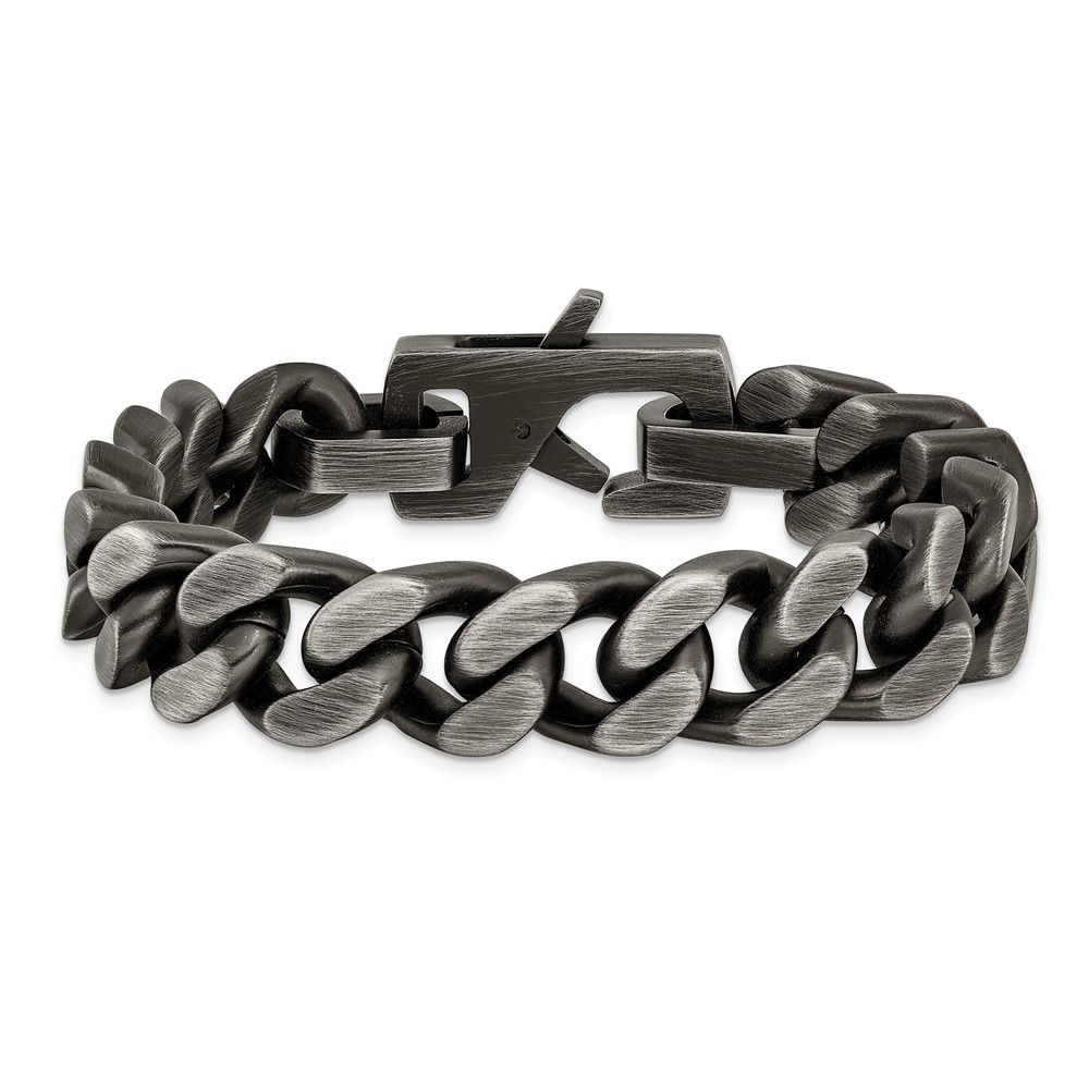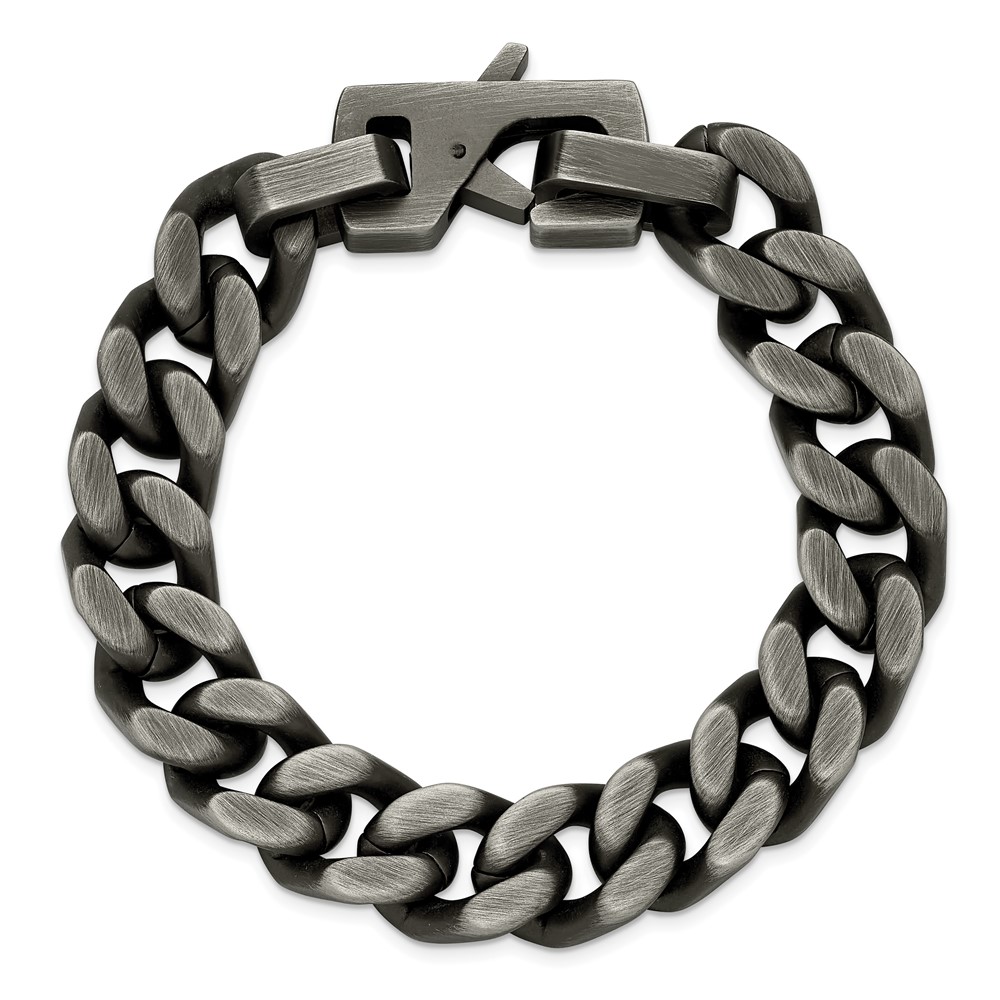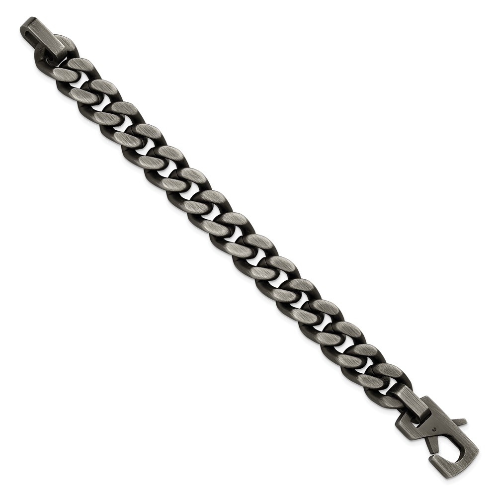Stainless Steel Antiqued and Brushed 14mm Curb Link 8.75-inch Bracelet