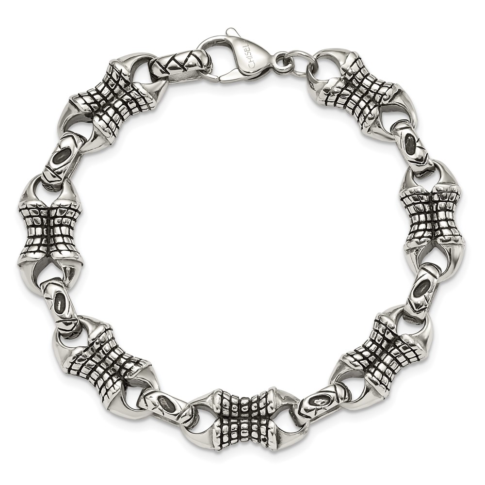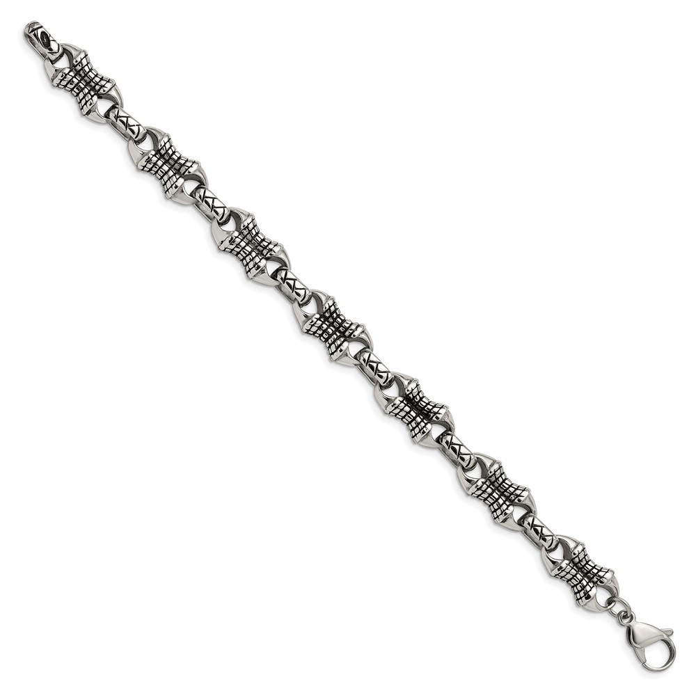 Stainless Steel Antiqued and Polished Patterned 8.75-inch Bracelet