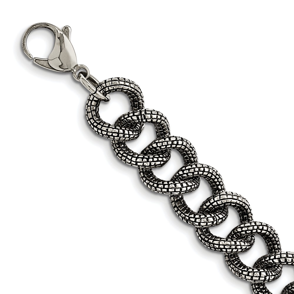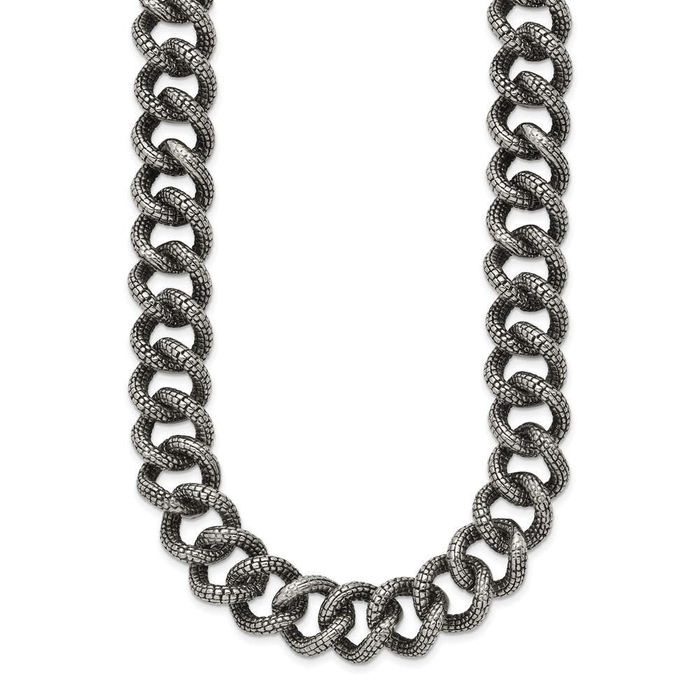 Stainless Steel Antiqued and Textured Link 24-in Necklace