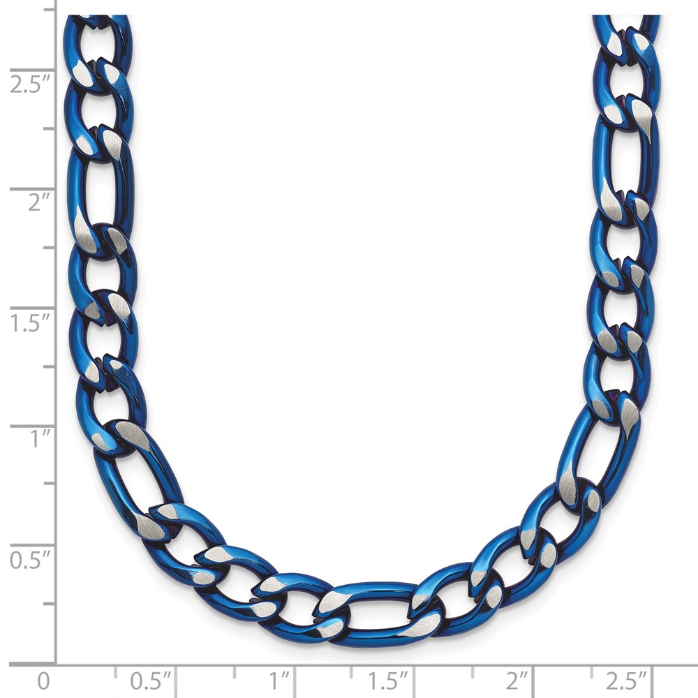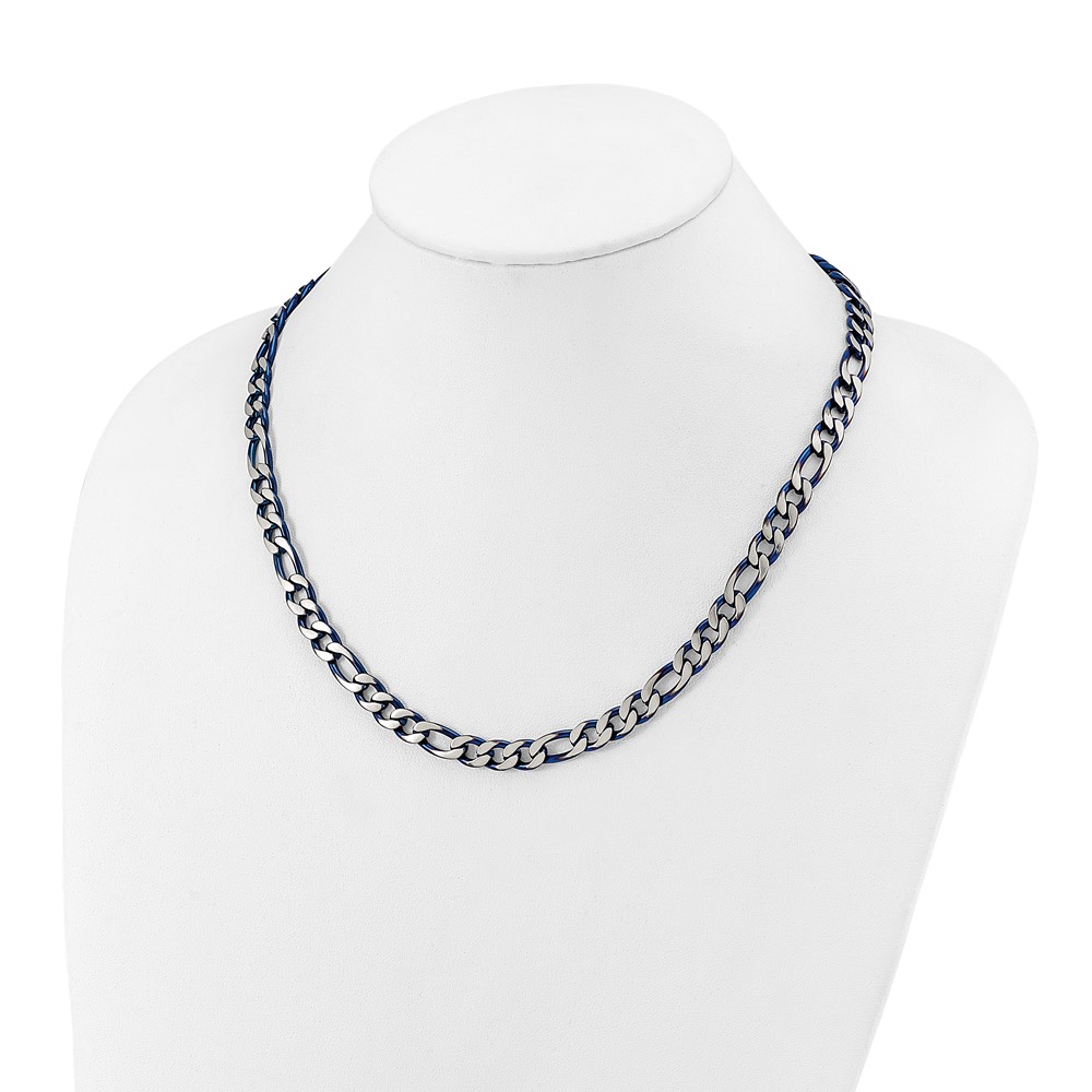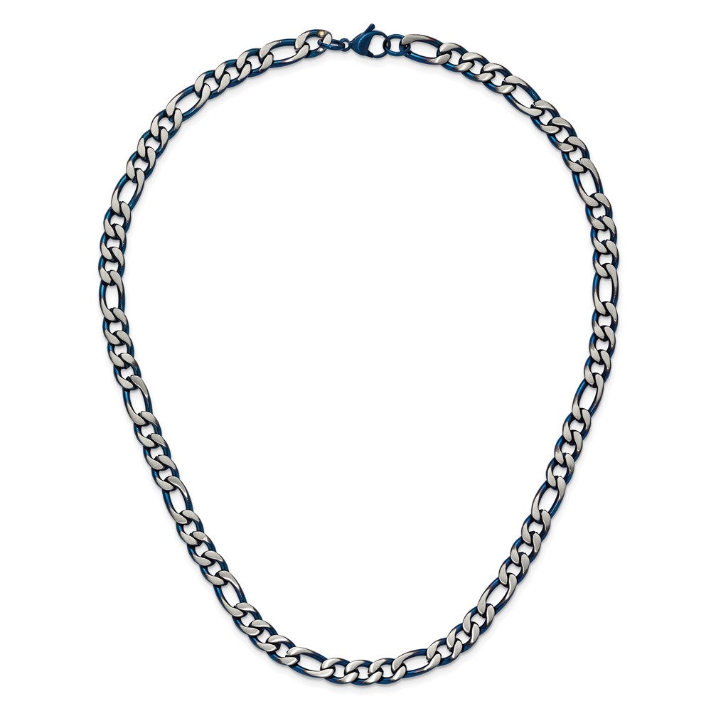 Stainless Steel Brushed and Polished Blue IP 7.5mm Figaro Necklace