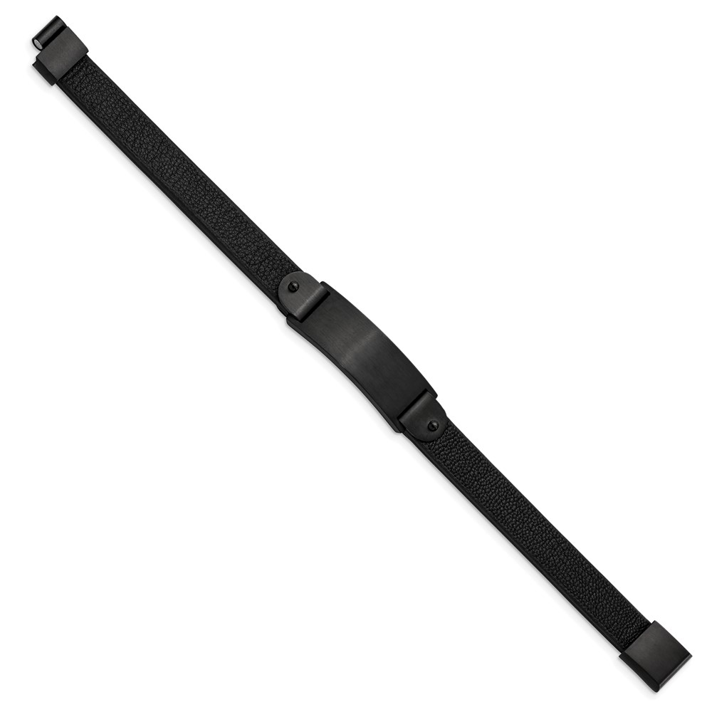 Stainless Steel Brushed Black IP-plated Black Leather 8.5-inch ID Bracelet