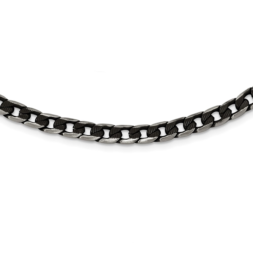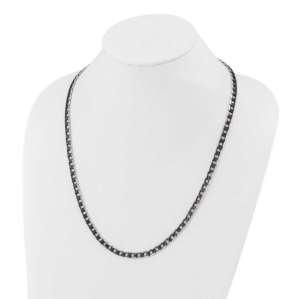 Stainless Steel Brushed & Textured Black IP-plated Curb Cha-in 24-in Necklace