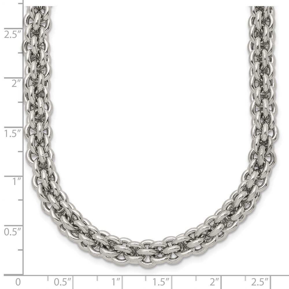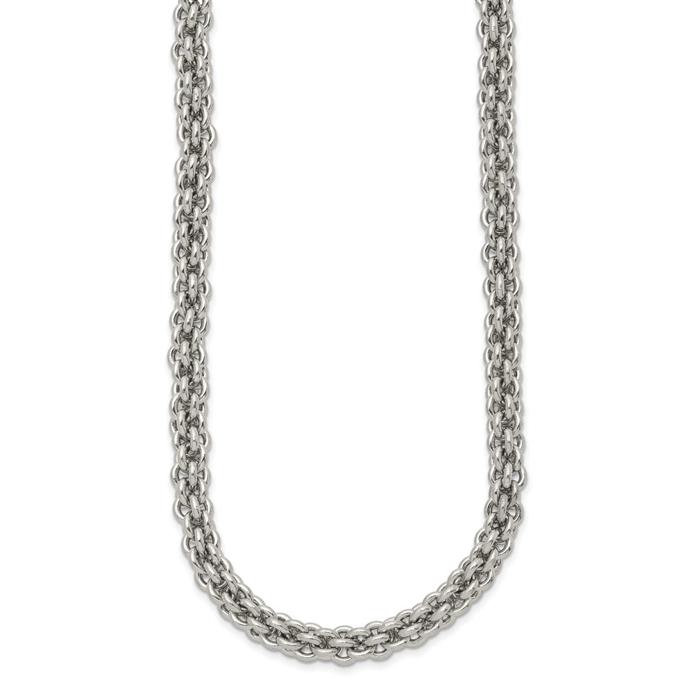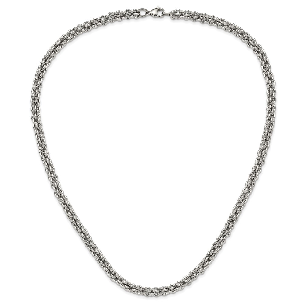 Finish:Polished Length of Item:24 in Chain Length:24 in Chain Type:Other Chains Chain Width:7 mm Clasp /Connector:Lobster (Fancy) Material: Primary:Stainless Steel Width of Item:7 mm Packaging:Gift Boxed Product Type:Jewelry Jewelry Type:Chains Sold By Unit:Each Necklace Type:Chain Styles Gender:Men’s Material: Primary – Color:White