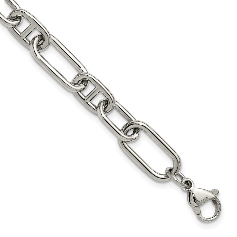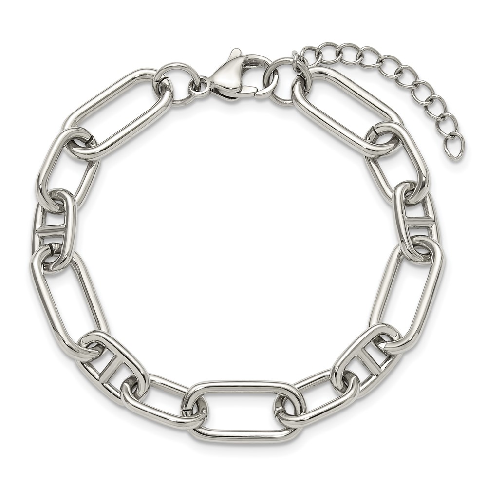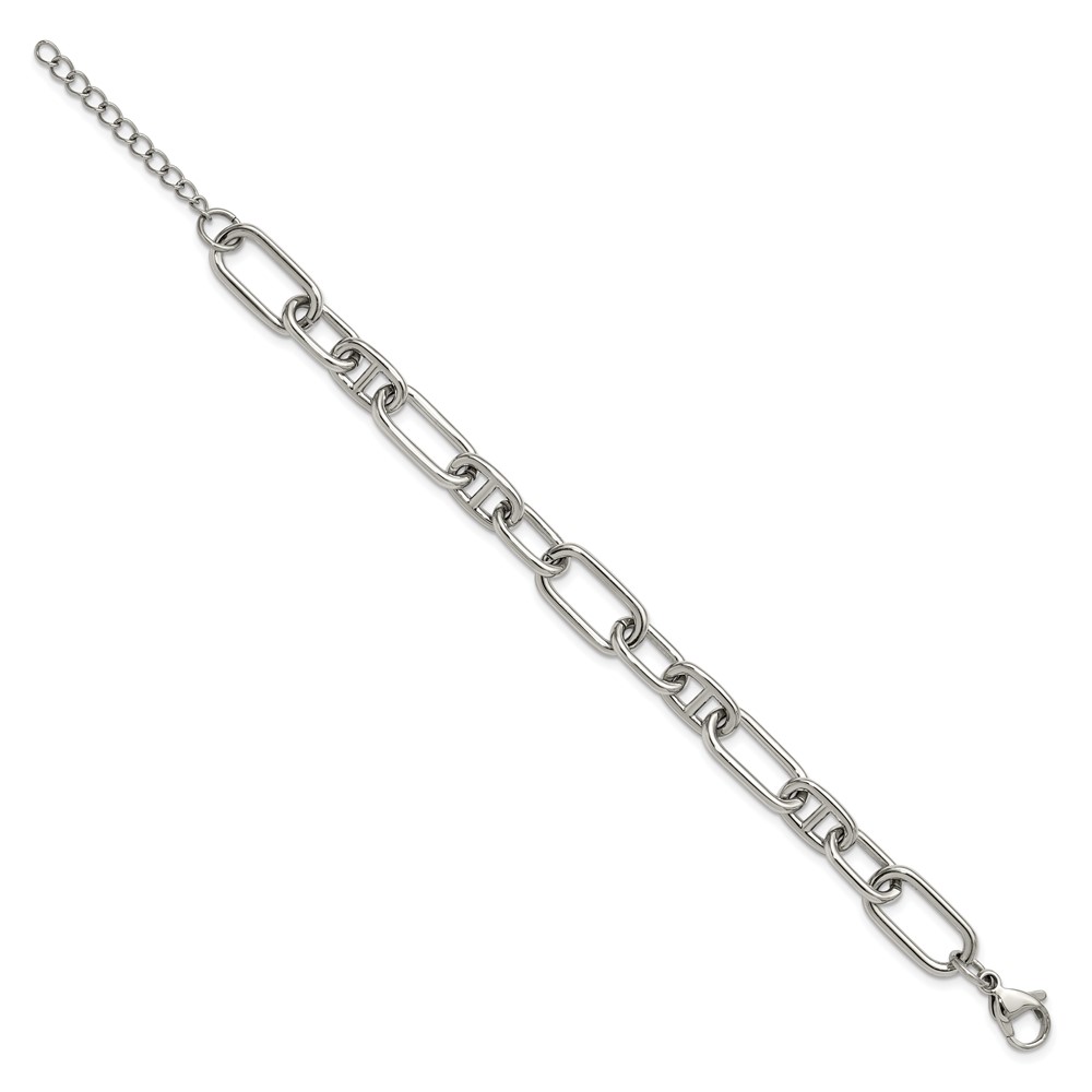 Stainless Steel Polished 6.5 +1.25-inch 9mm Link Bracelet
