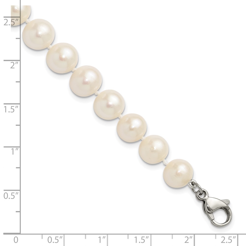 Stainless Steel Polished 9-10mm Hand Knotted Round FWC Pearl 8-inch Bracelet