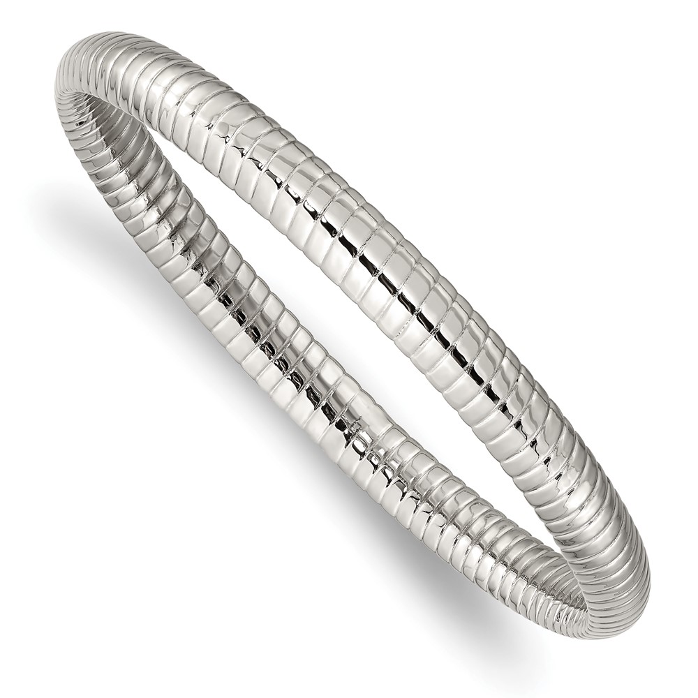 Stainless Steel Polished and Textured Hollow Slip-on Bangle