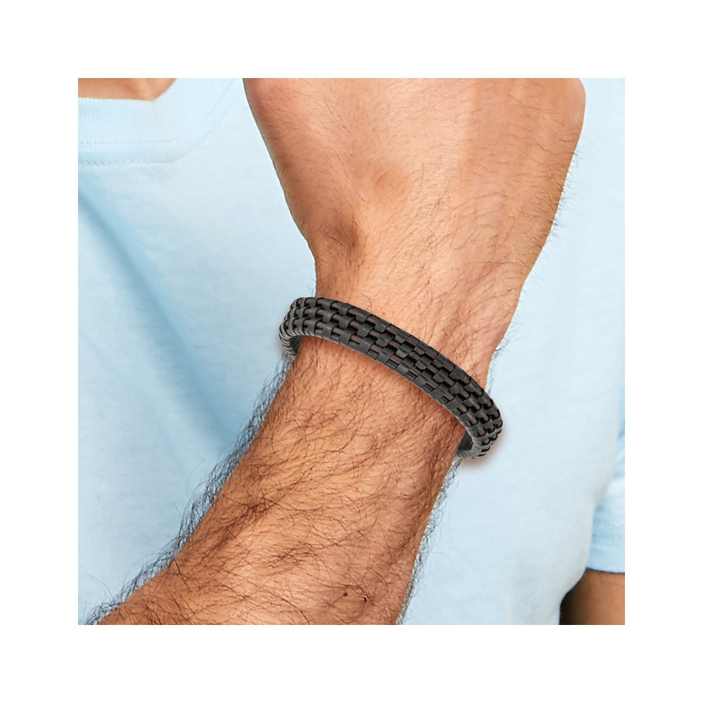 Finish:Polished Length of Item:8.25-inch Material: Accents:Leather Plating:IP-Plated Material: Accent Color 1:Black Chain Length:8.25-inch Chain Type:Leather Clasp /Connector:Magnetic Clasp Material: Primary:Stainless Steel Width of Item:11.9 mm Packaging:Gift Pouch Product Type:Jewelry Jewelry Type:Bracelets Sold By Unit:Each Bracelet Type:Cord, Leather & Rubber Gender:Men’s Material: Primary – Color:White Items per Pack:1 Plating Color:Black Material: Accent Color 2:Brown