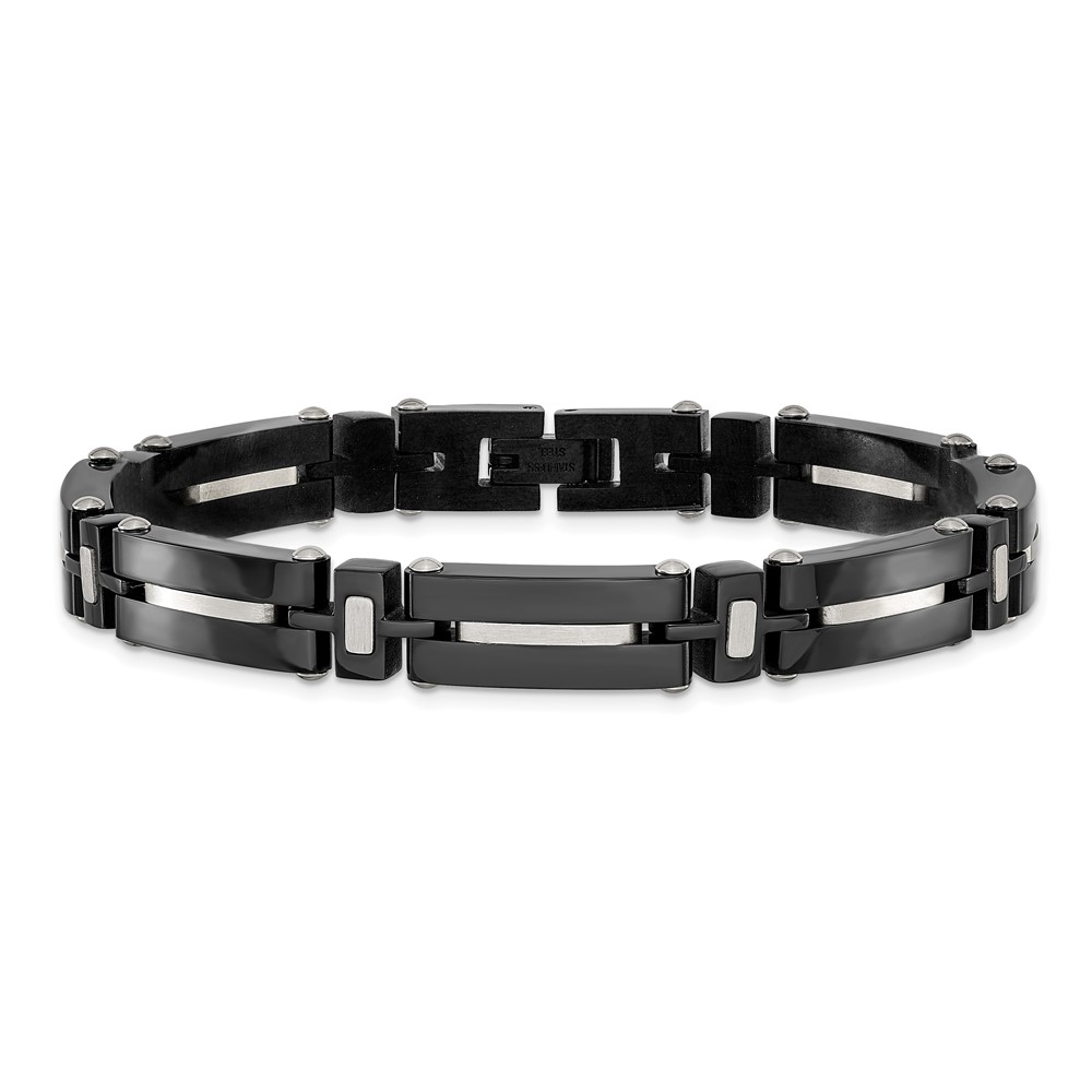 Stainless Steel Polished Black IP-plated 8.75-inch Link Bracelet