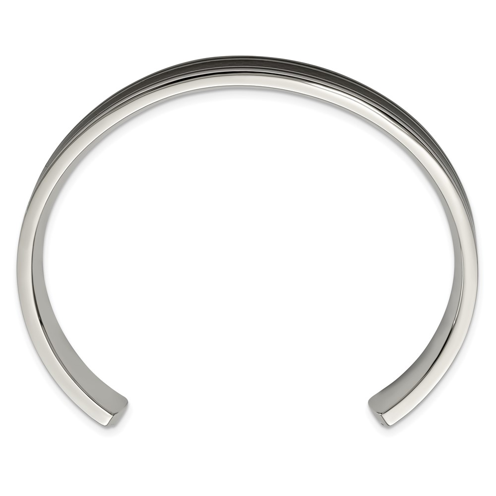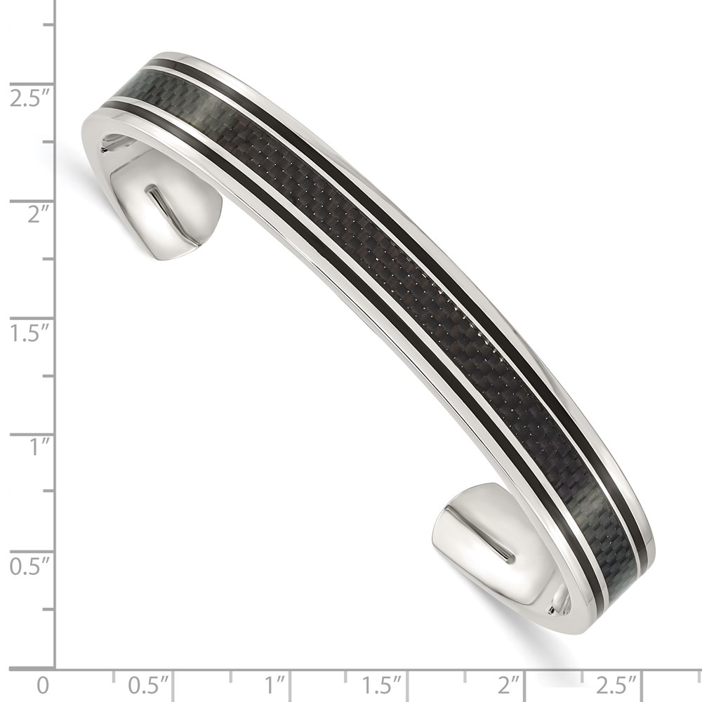 Stainless Steel Polished Black IP-plated w/Black Carbon Fiber Inlay Bangle