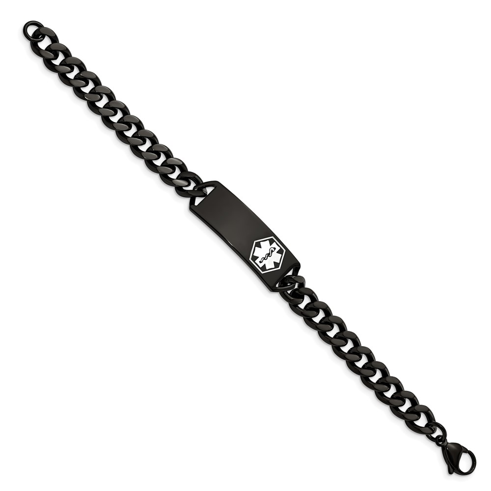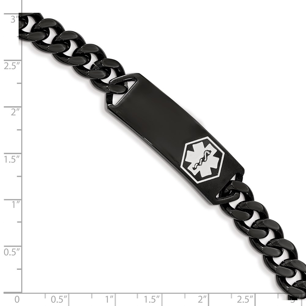 Stainless Steel Polished Black IP w/White Enamel 8-inch MED ID Bracelet
