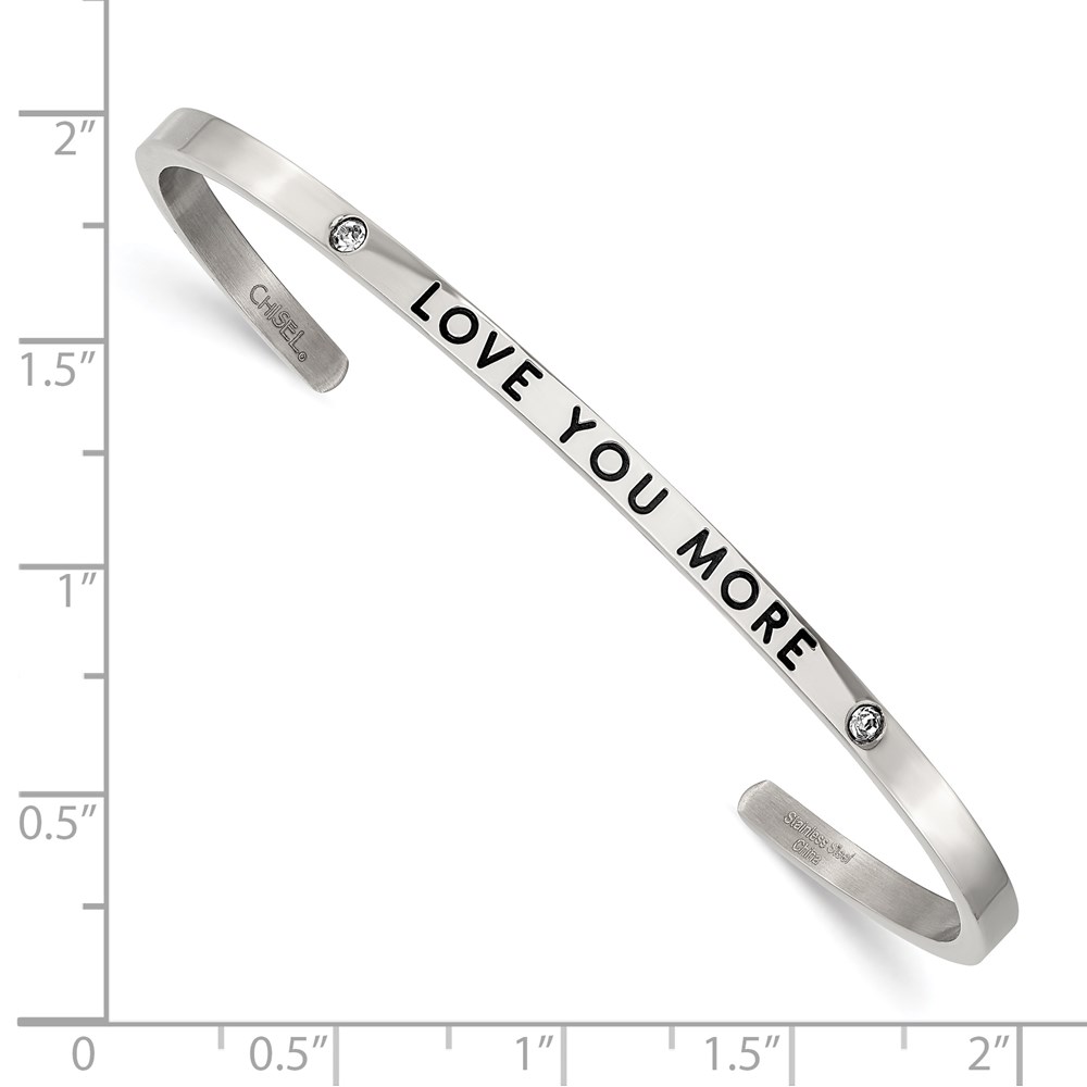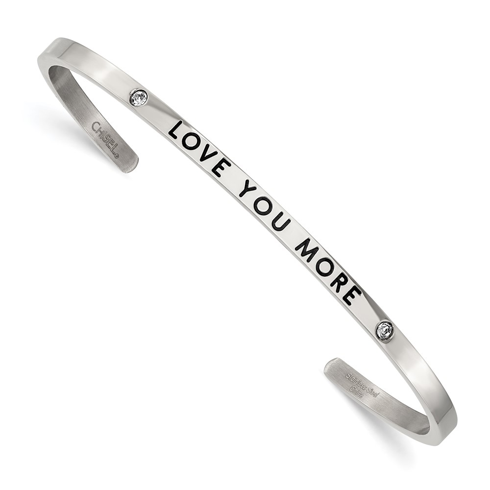 Stainless Steel Polished Enamel/Crystal LOVE YOU MORE 3mm Cuff Bangle