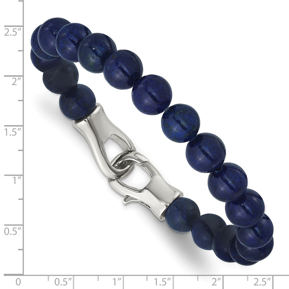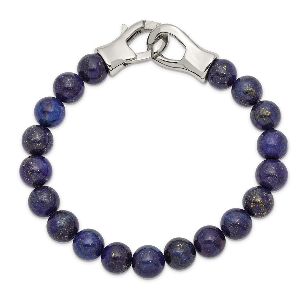 Stainless Steel Polished Genuine Lapis Beaded 9-inch Bracelet