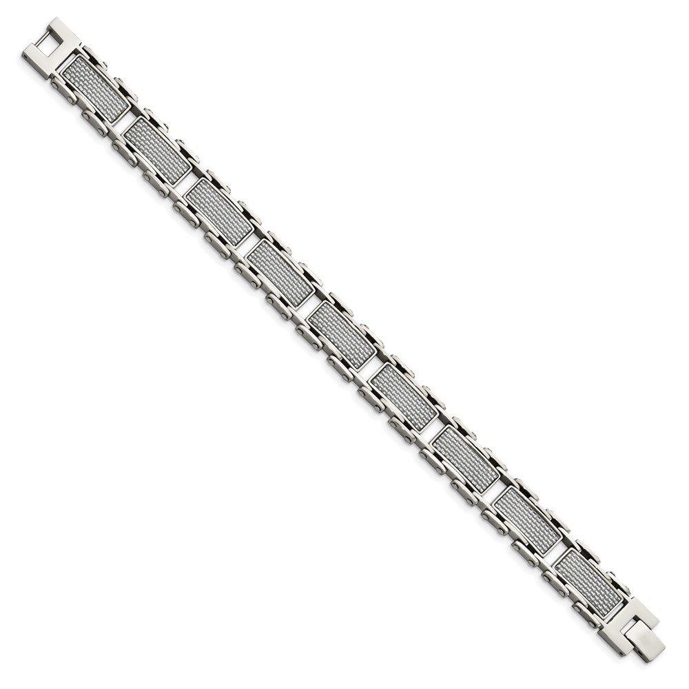 Stainless Steel Polished Grey Carbon Fiber Inlay 8.5-inch Bracelet