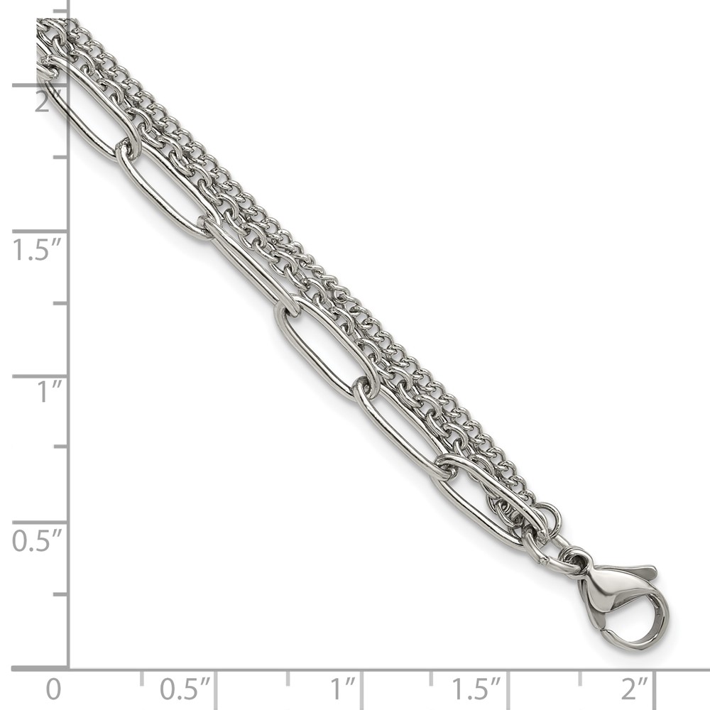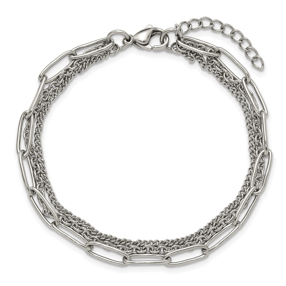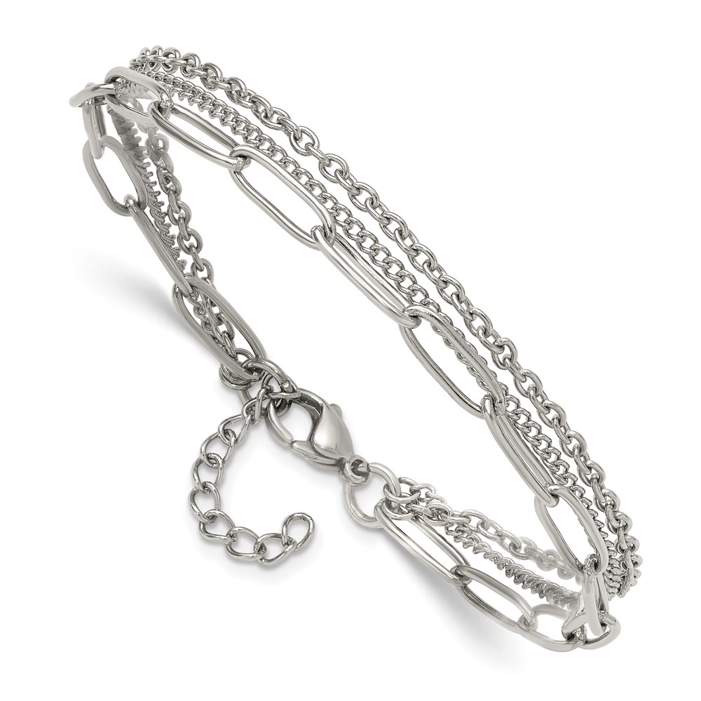 Stainless Steel Polished Multi-Strand 7-inch +1.25-inch Bracelet