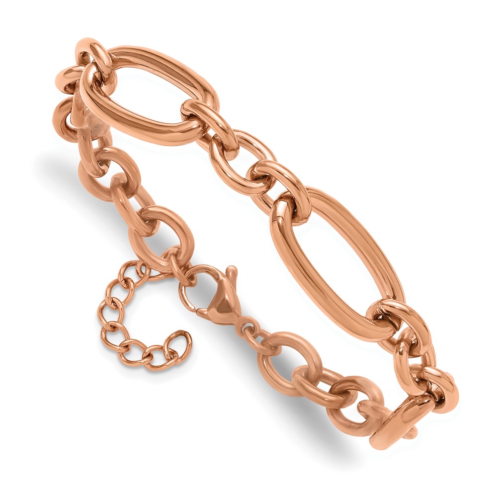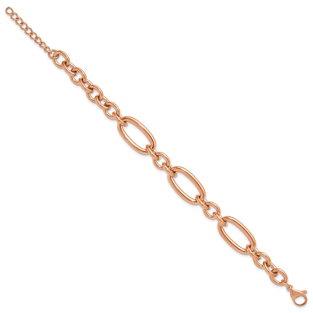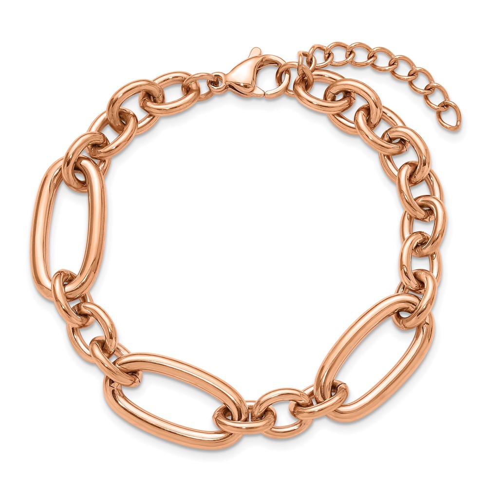 Stainless Steel Polished Rose IP-plated Open Link 7-inch +1.25-inch Bracelet