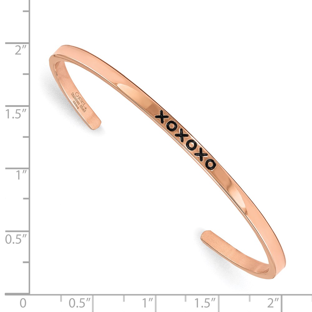 Stainless Steel Polished Rose IP-plated xoxoxo Crystal 3mm Cuff Bangle