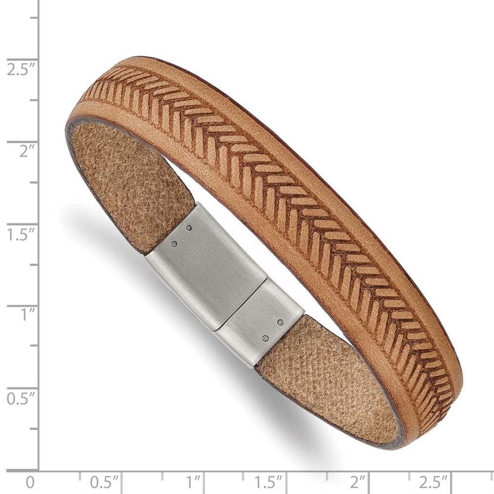 Stainless Steel Polished Tan Italian Leather 8.75-inch Bracelet