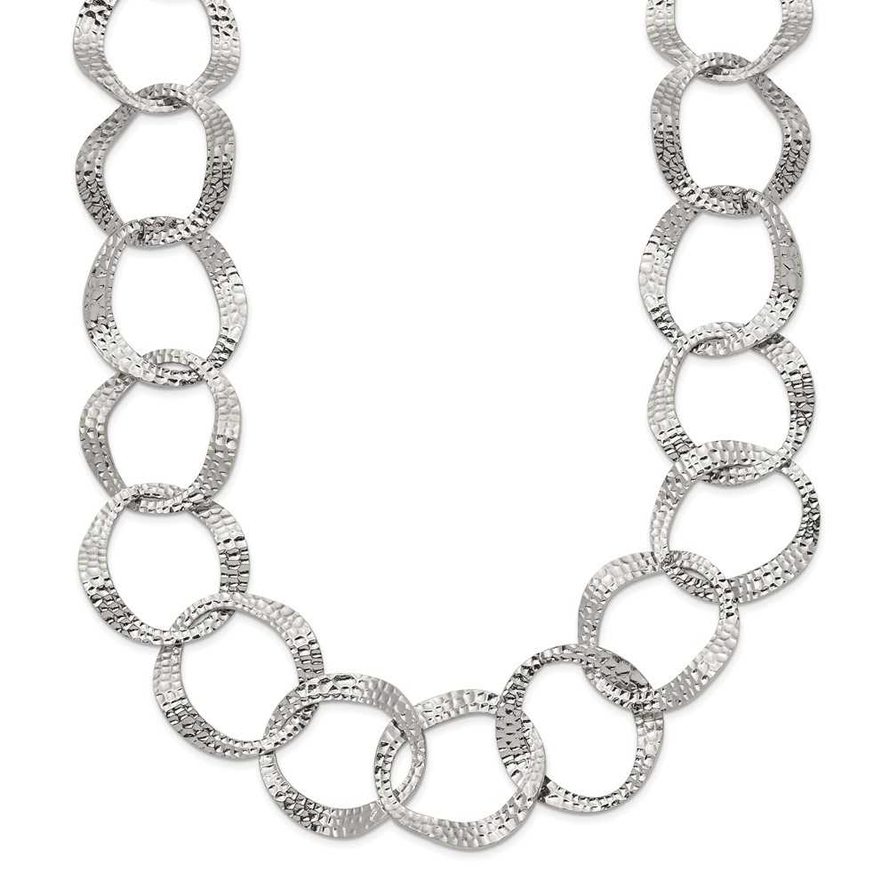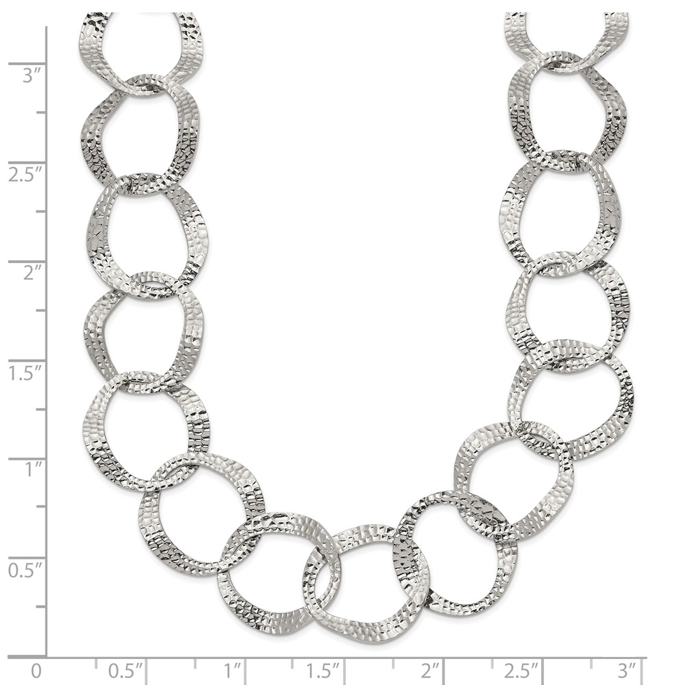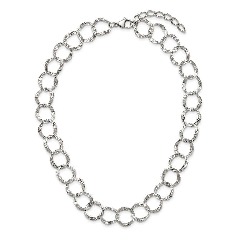 Stainless Steel Polished & Textured Open Circles 18-in +2-in Necklace