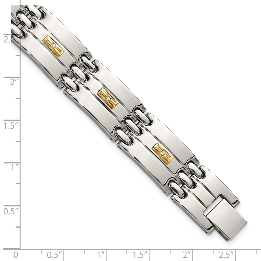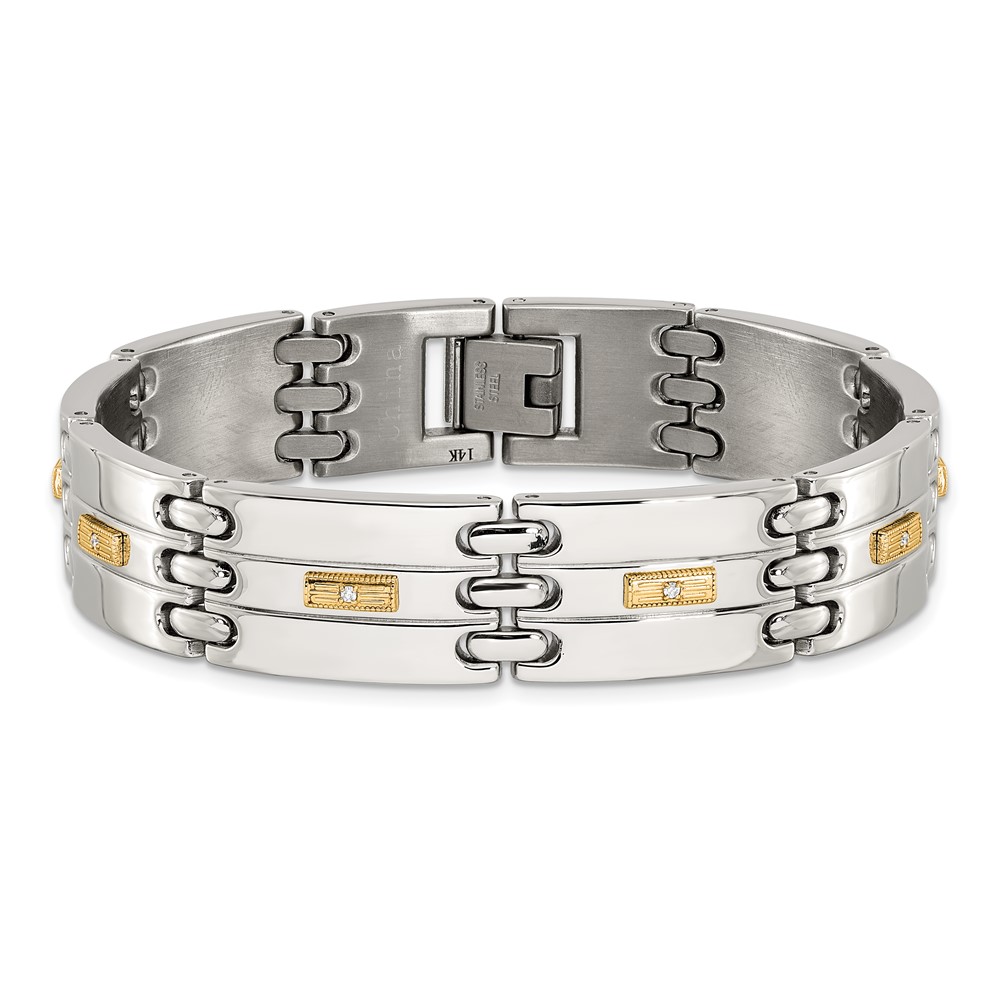 Stainless Steel Polished w/14K Accent and 1/15ct. Diamond 8.5-inch Link Bracel