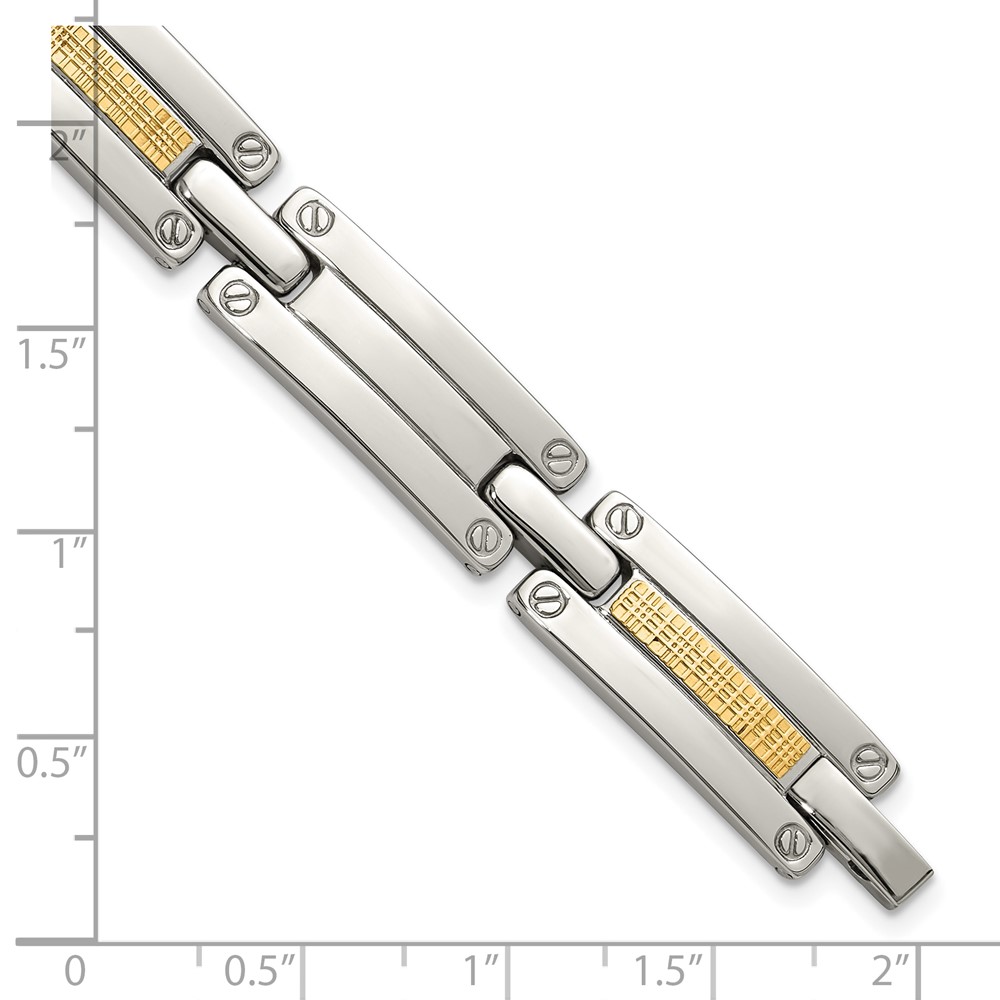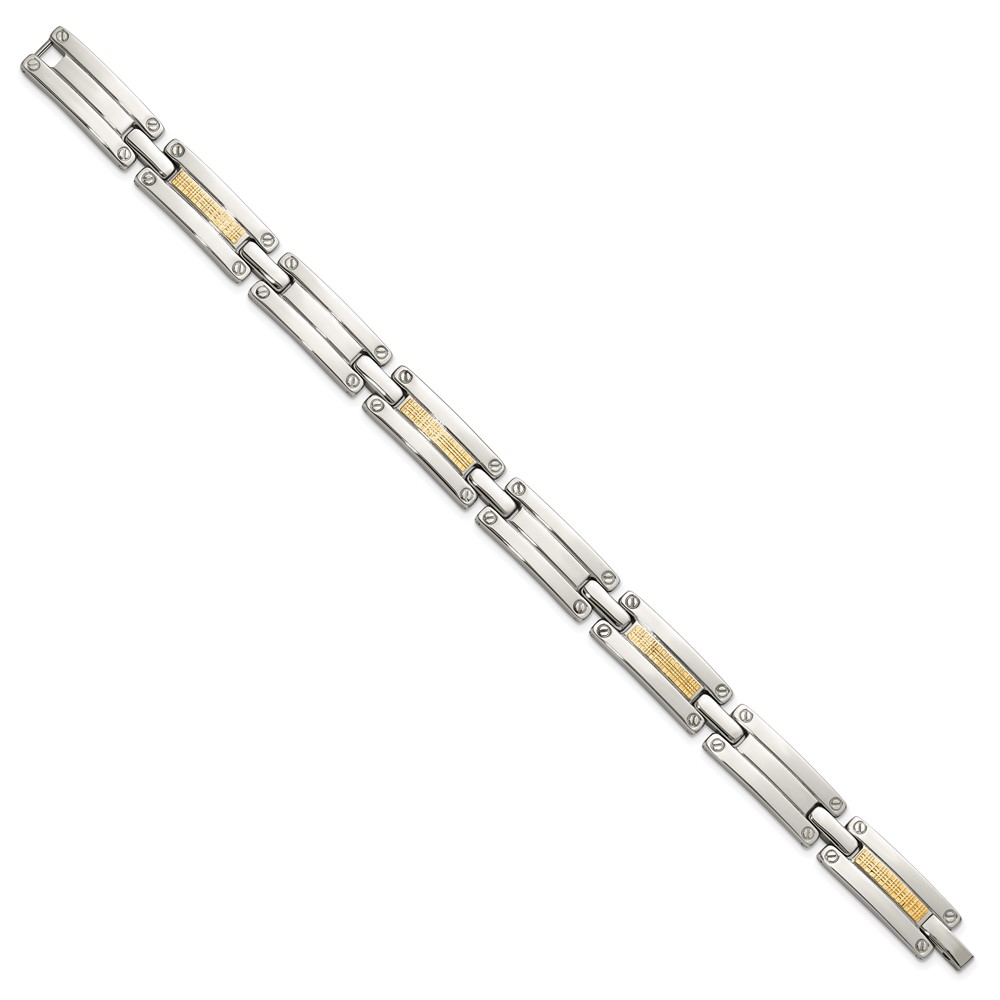 Stainless Steel Polished w/14K Accent Basket Weave 8.5-inch Link Bracelet