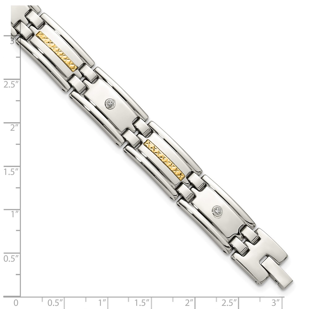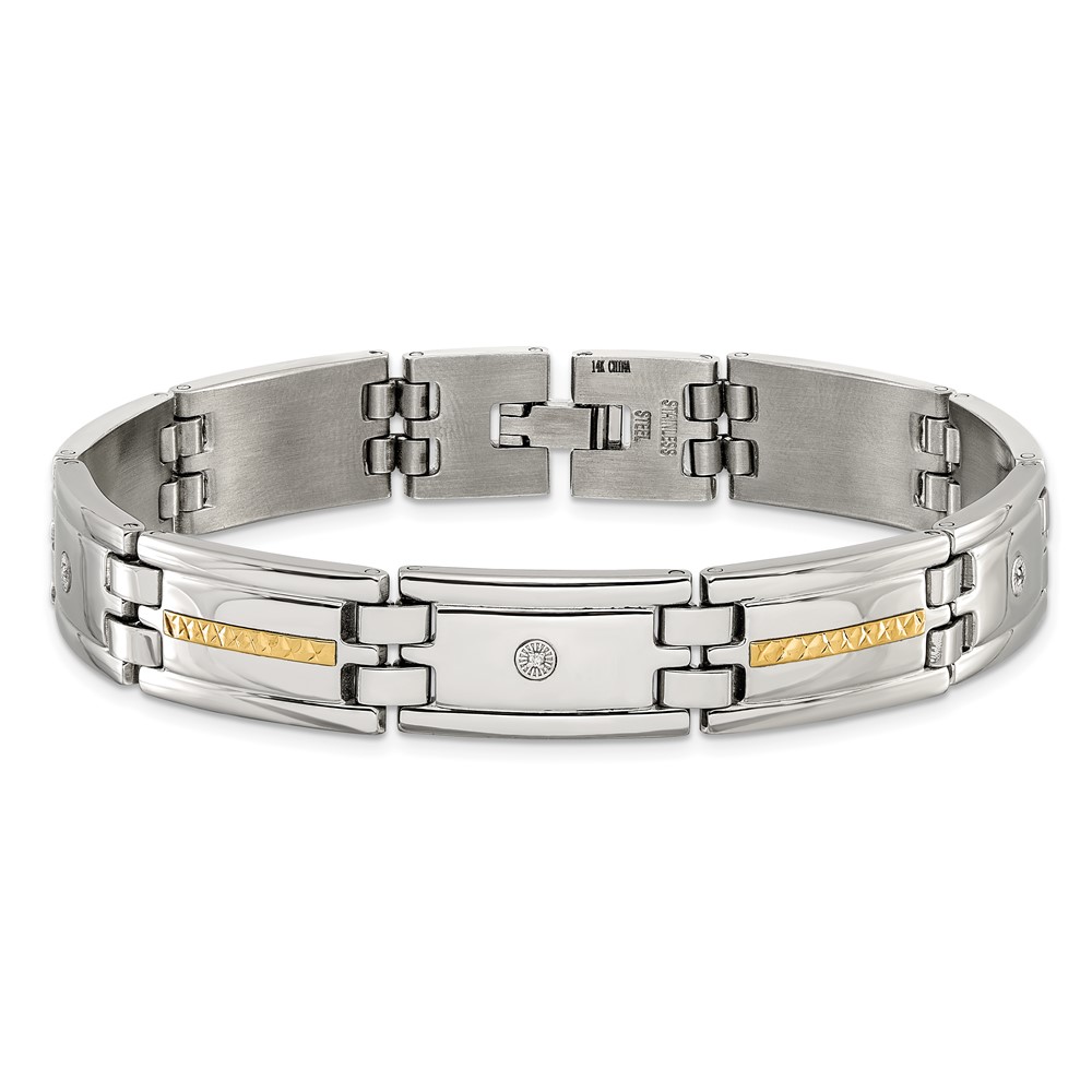 Stainless Steel Polished w/14K Accent D/C .03ct. Diamond 8.75-inch Link Bracel