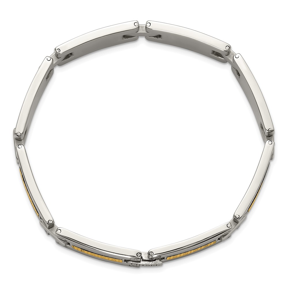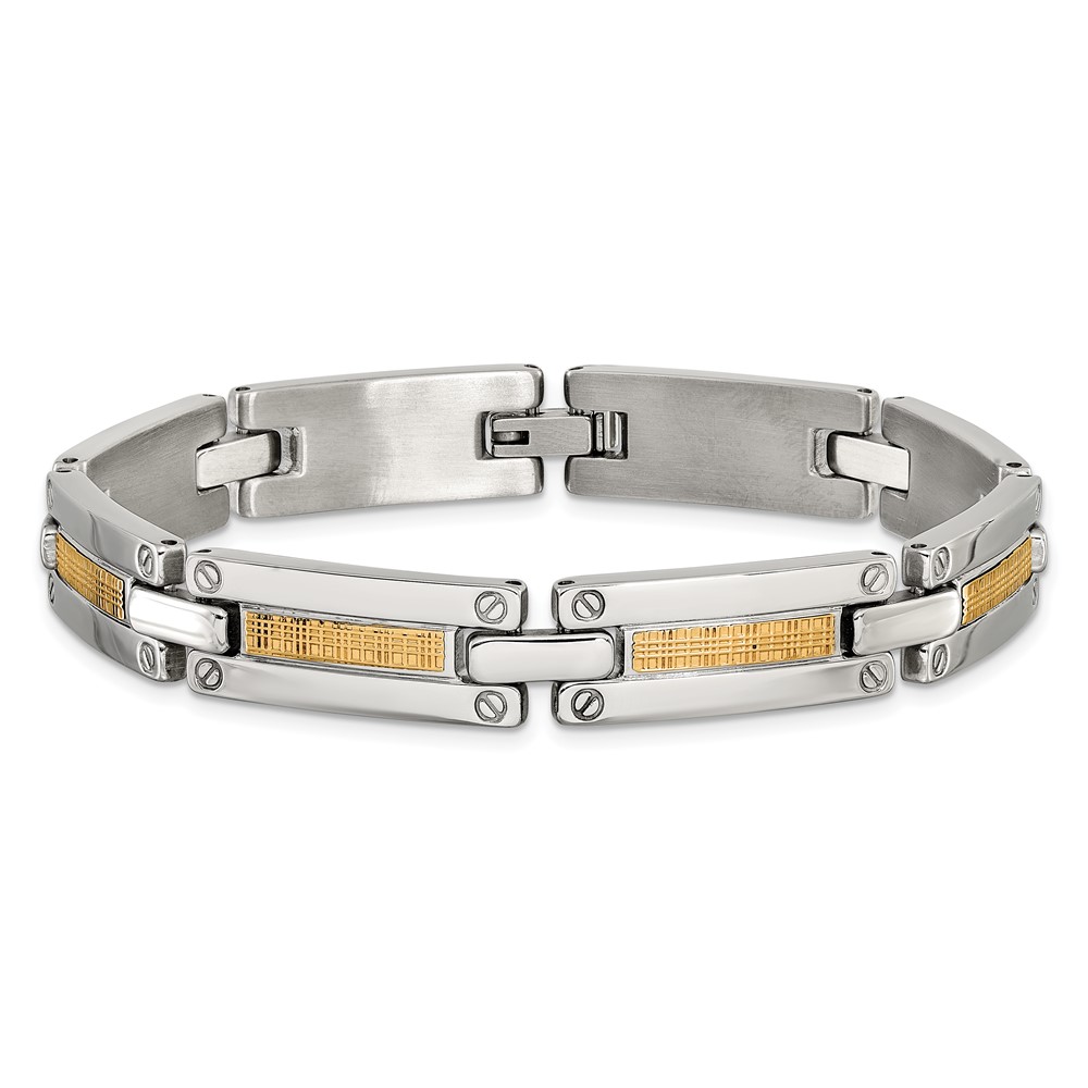 Stainless Steel Polished w/14K Basket Weave Pattern 8.5-inch Link Bracelet