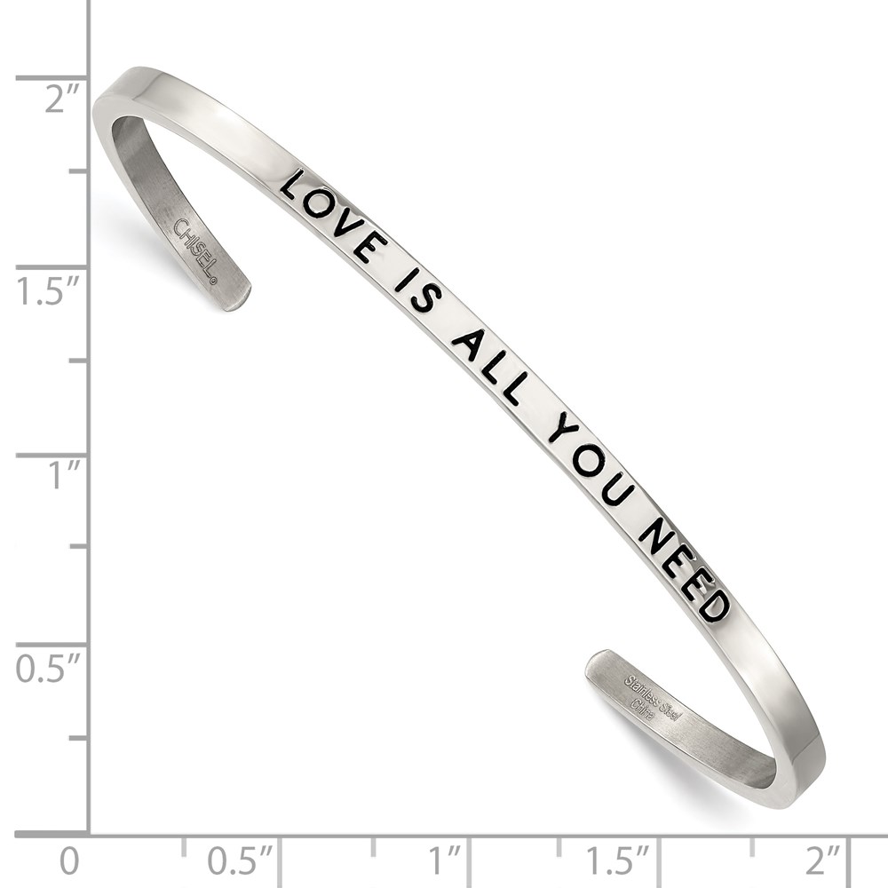 Stainless Steel Polished w/Enamel/Crystal ALL YOU NEED 3mm Cuff Bangle