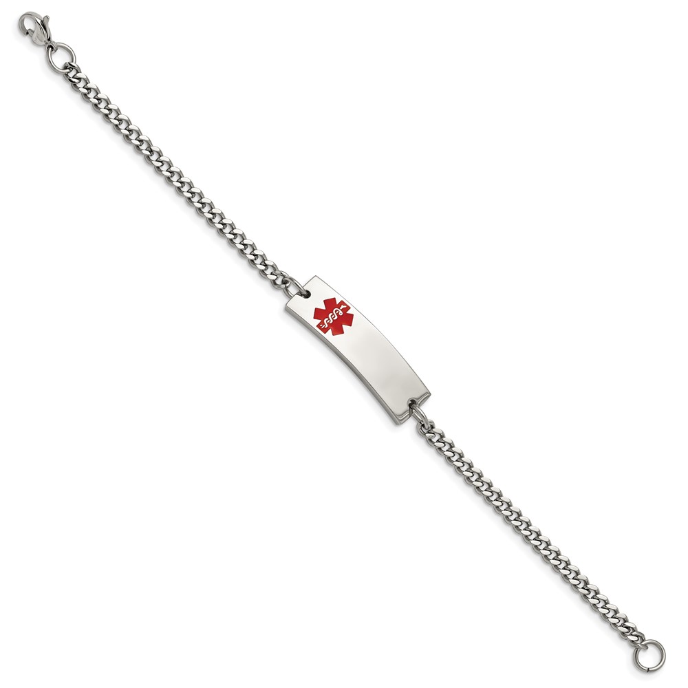 Stainless Steel Polished w/Red Enamel 8.75-inch Medical ID Bracelet