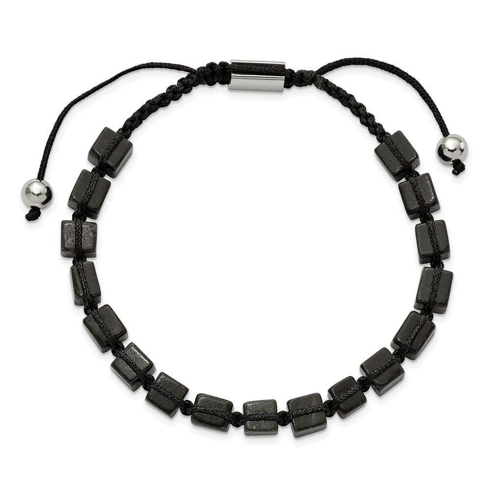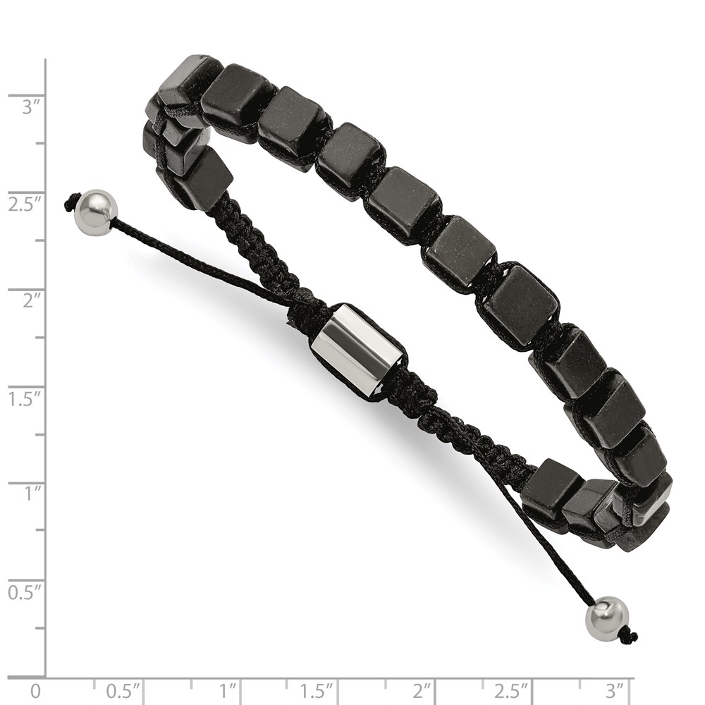 Stainless Steel Polished with Black Agate Macrame Adjustable Bracelet