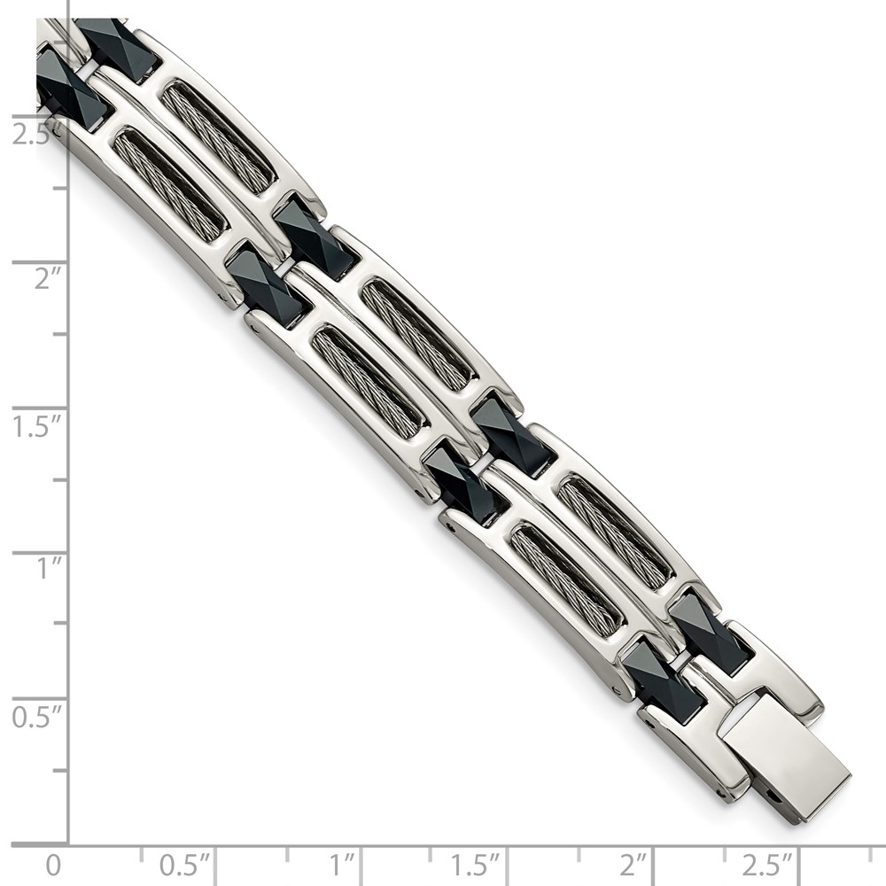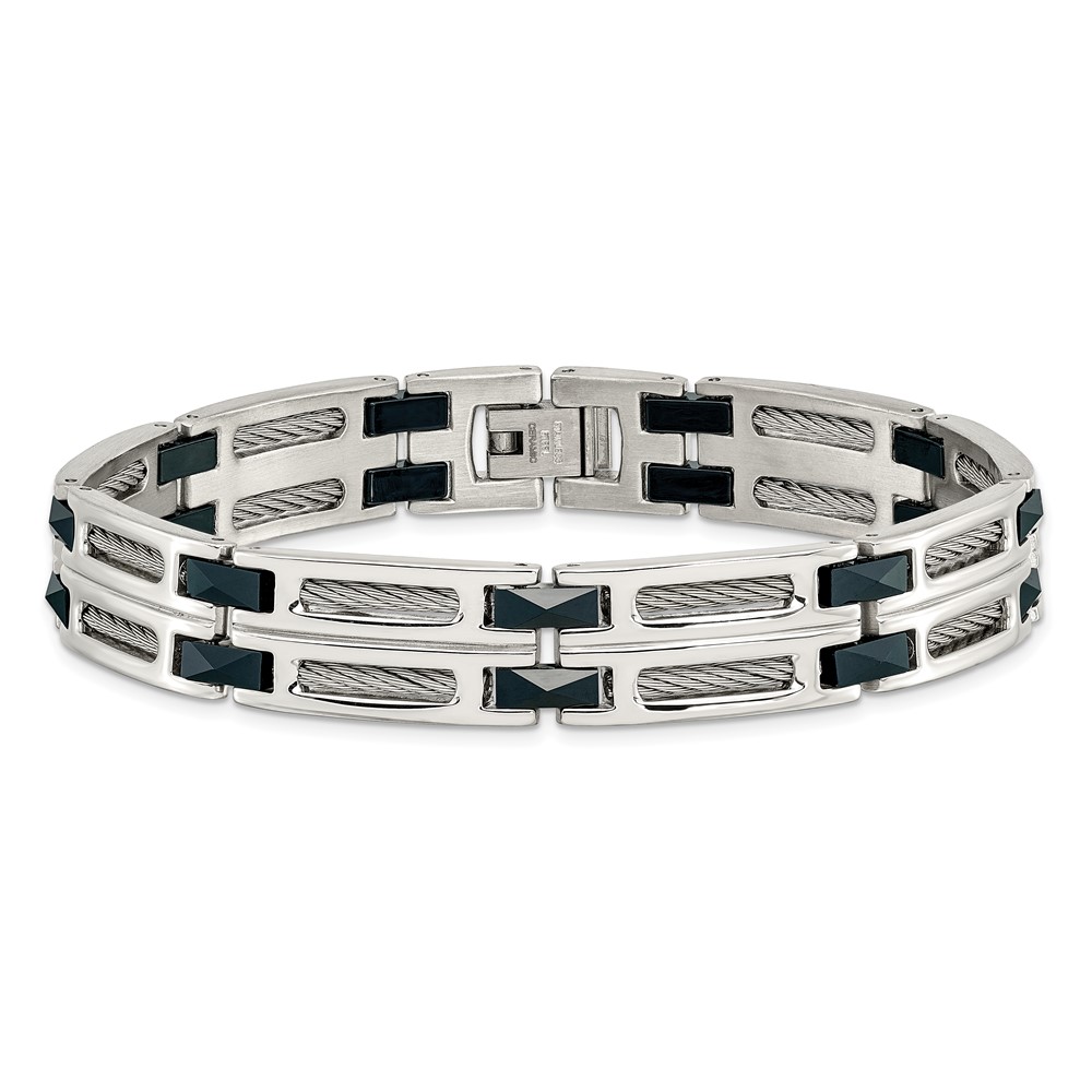 Stainless Steel Polished with Blue Ceramic 8.75-inch Bracelet