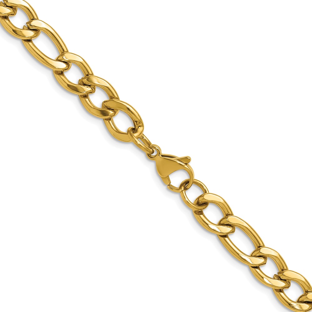 Stainless Steel Polished Yellow IP-plated 7.5mm Figaro Chain
