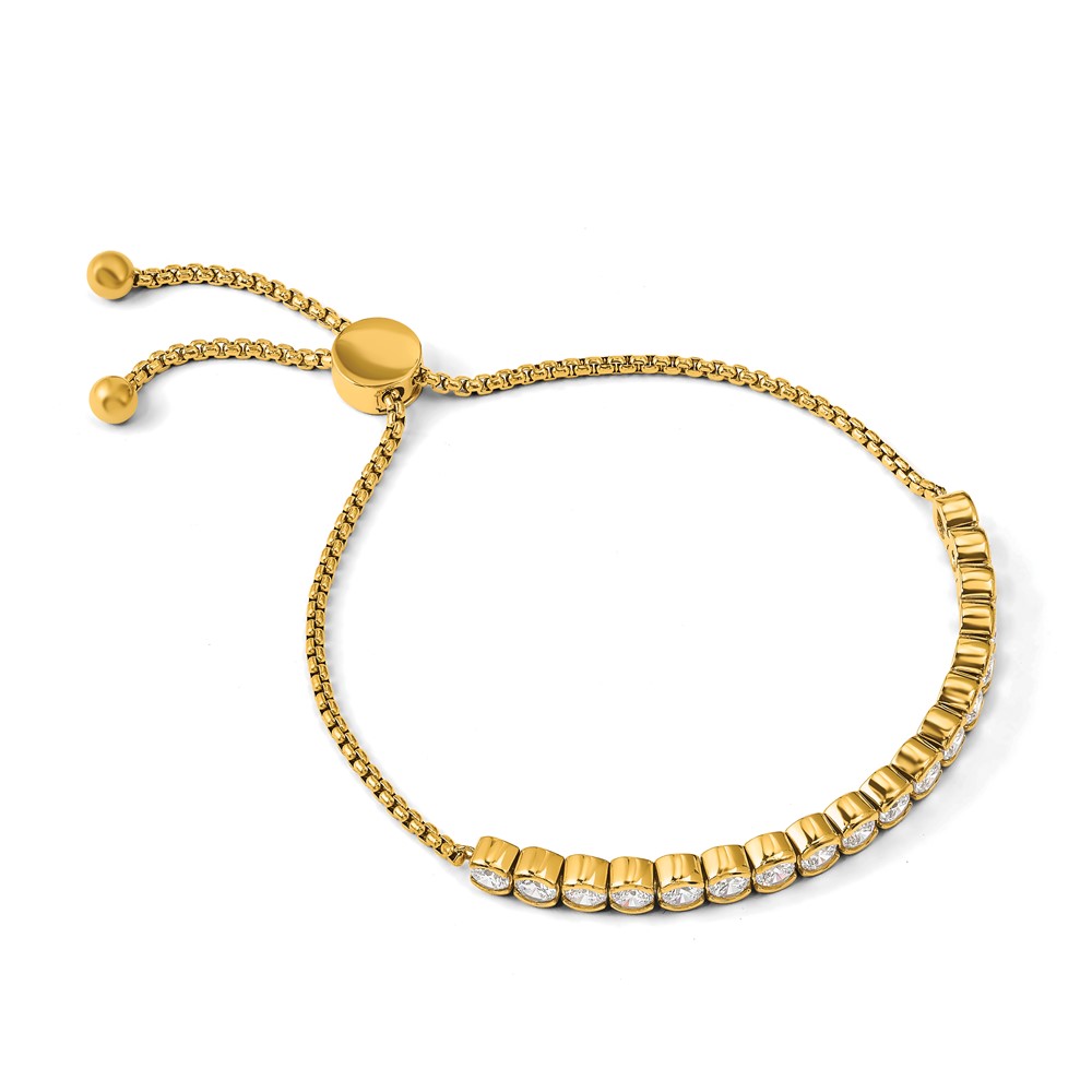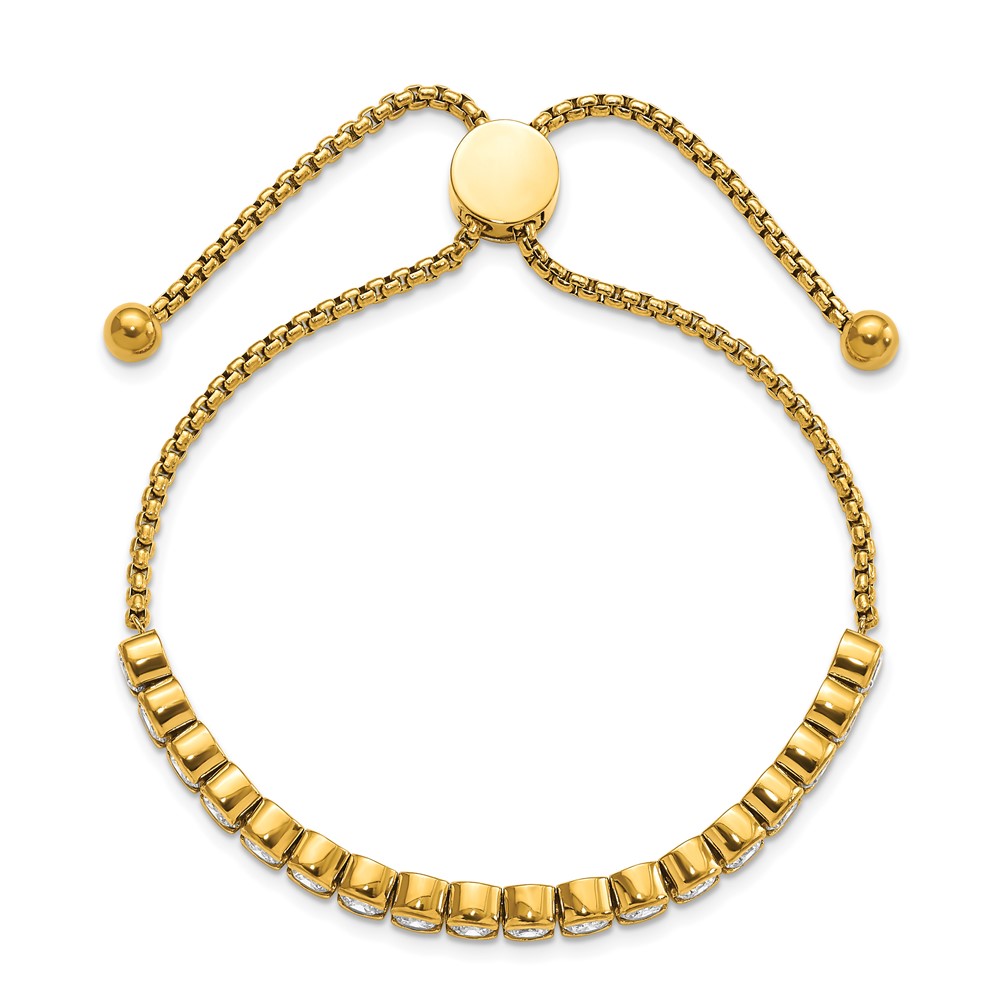 Stainless Steel Polished Yellow IP-plated CZ Adjustable Bracelet