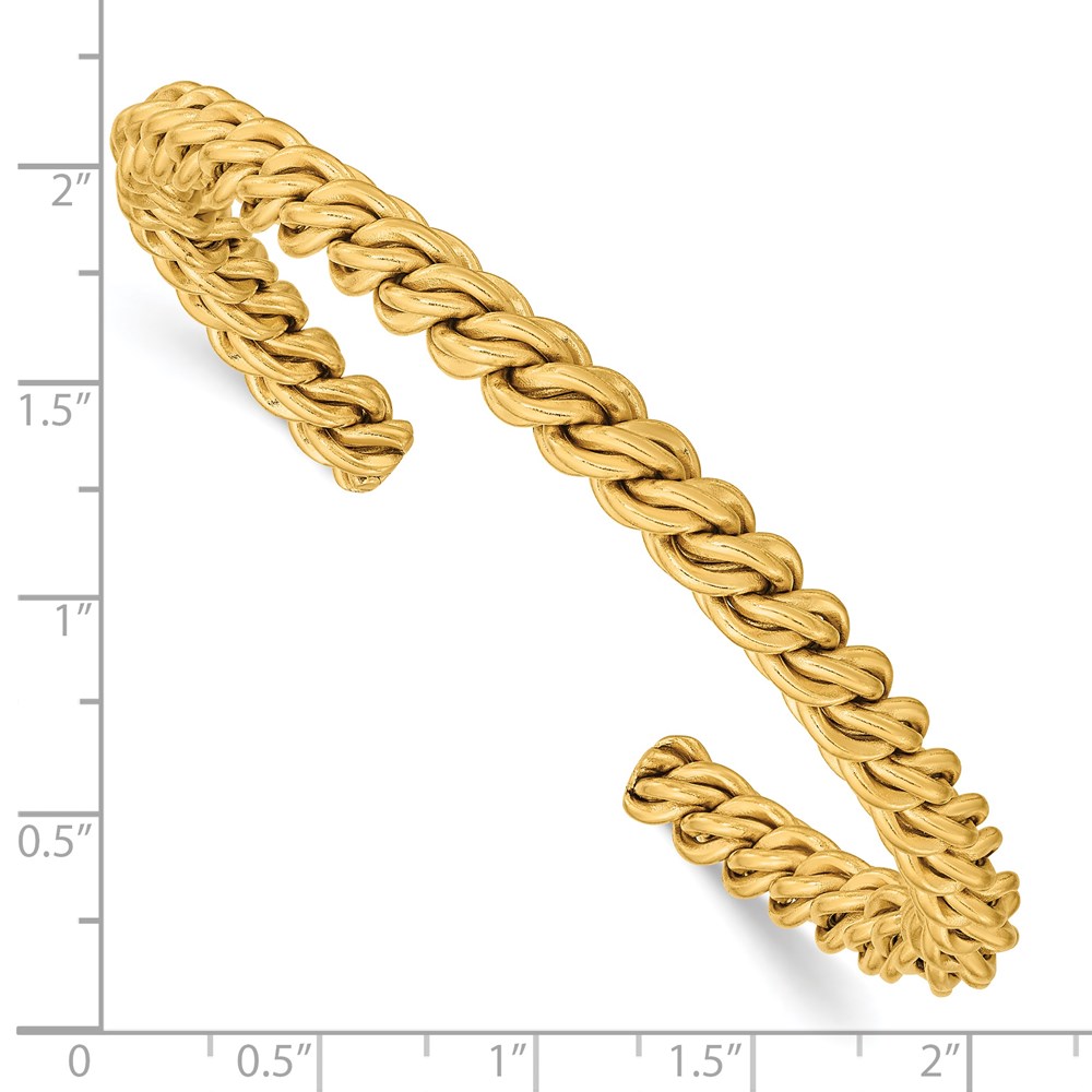 Stainless Steel Polished Yellow IP-plated Twisted 6mm Cuff Bangle