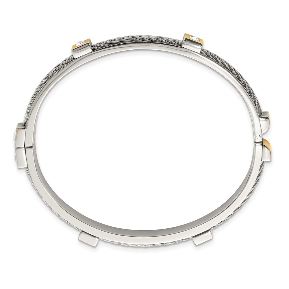 Stainless Steel Polished Yellow IP-plated w/Preciosa Crystal Hinged Bangle