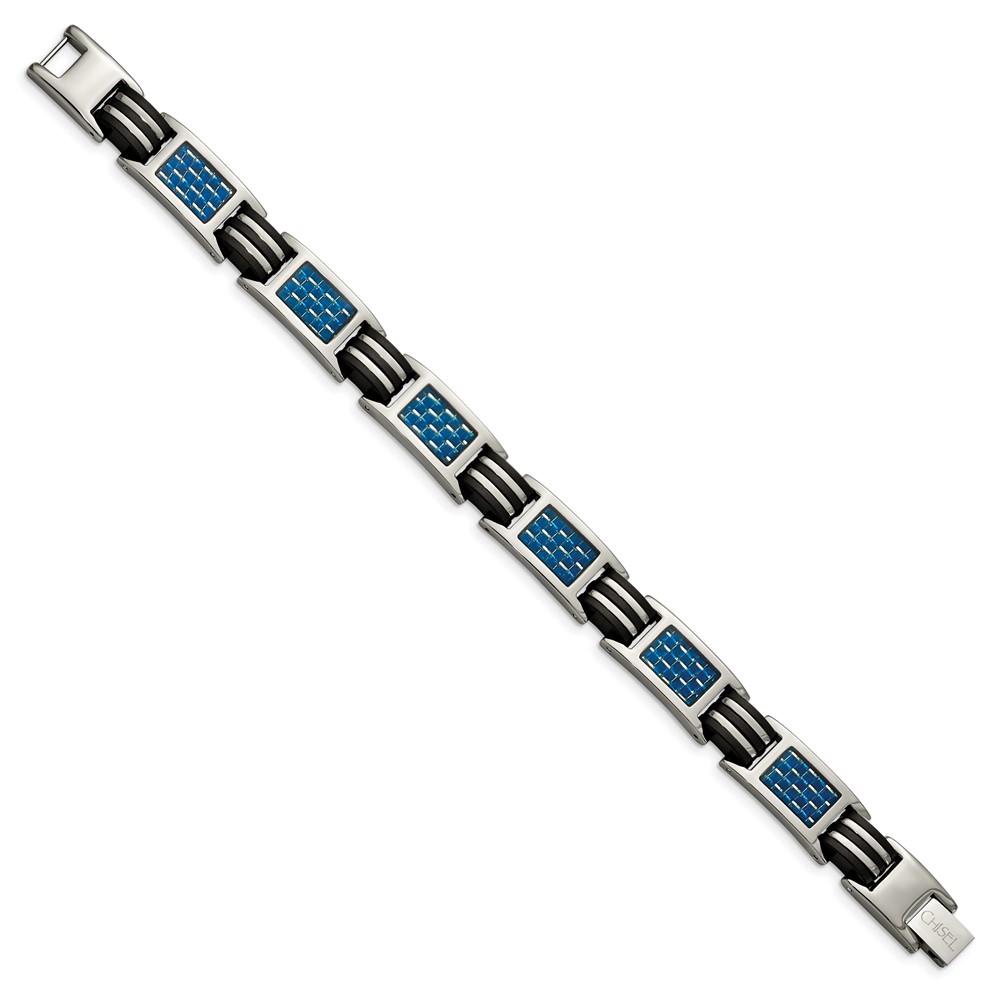 Titanium Polished w/Blue Carbon Fiber Inlay & Rubber 8.5-inch Bracelet