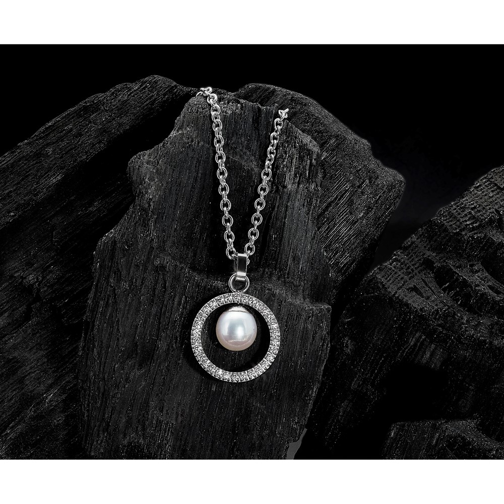 Titanium Polished w/CZ and Freshwater Cultured Pearl 22-inch Necklace