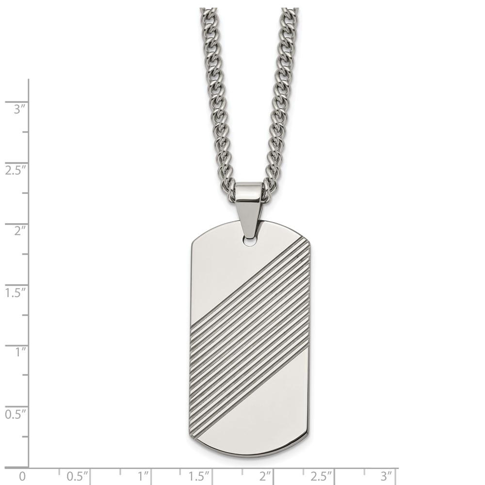 Tungsten Textured and Polished Dog Tag 24-inch Necklace